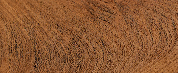 Madera de color castaño rojizo a castaño oscuro. Madera semi-dura y semipesada a pesada, de densidad aparente entre 0,750 a 0,850 g/cm3. Presenta textura media y heterogénea, con grano oblicuo y diseño floreado en corte tangencial, debido a las bandas de parénquima abundante dispuestas en forma concéntrica. Con buena estabilidad dimensional (no se hincha y contrae en forma pronunciada).
