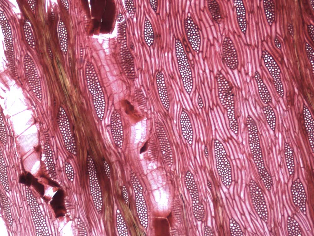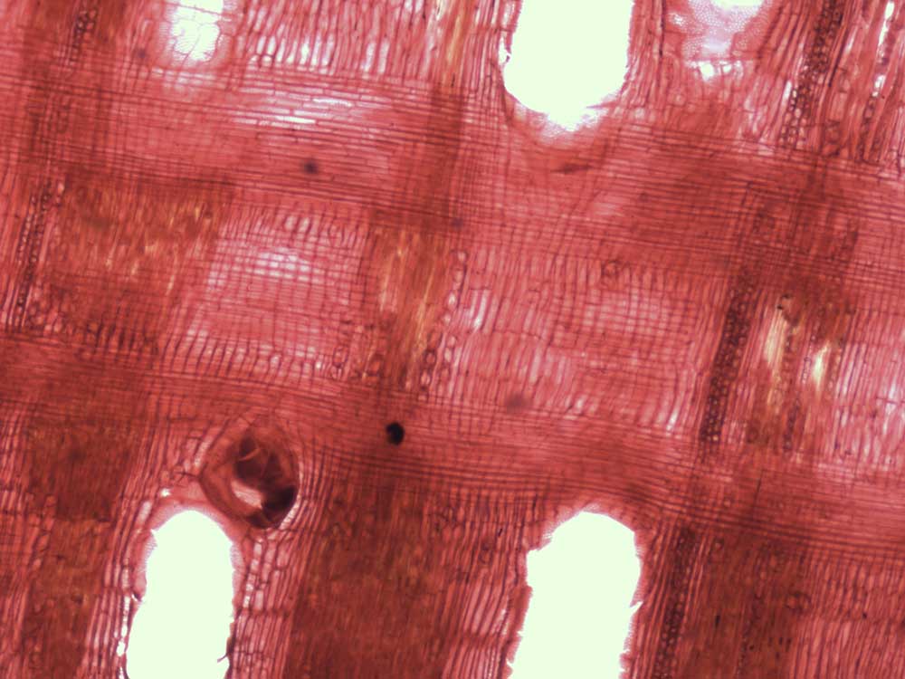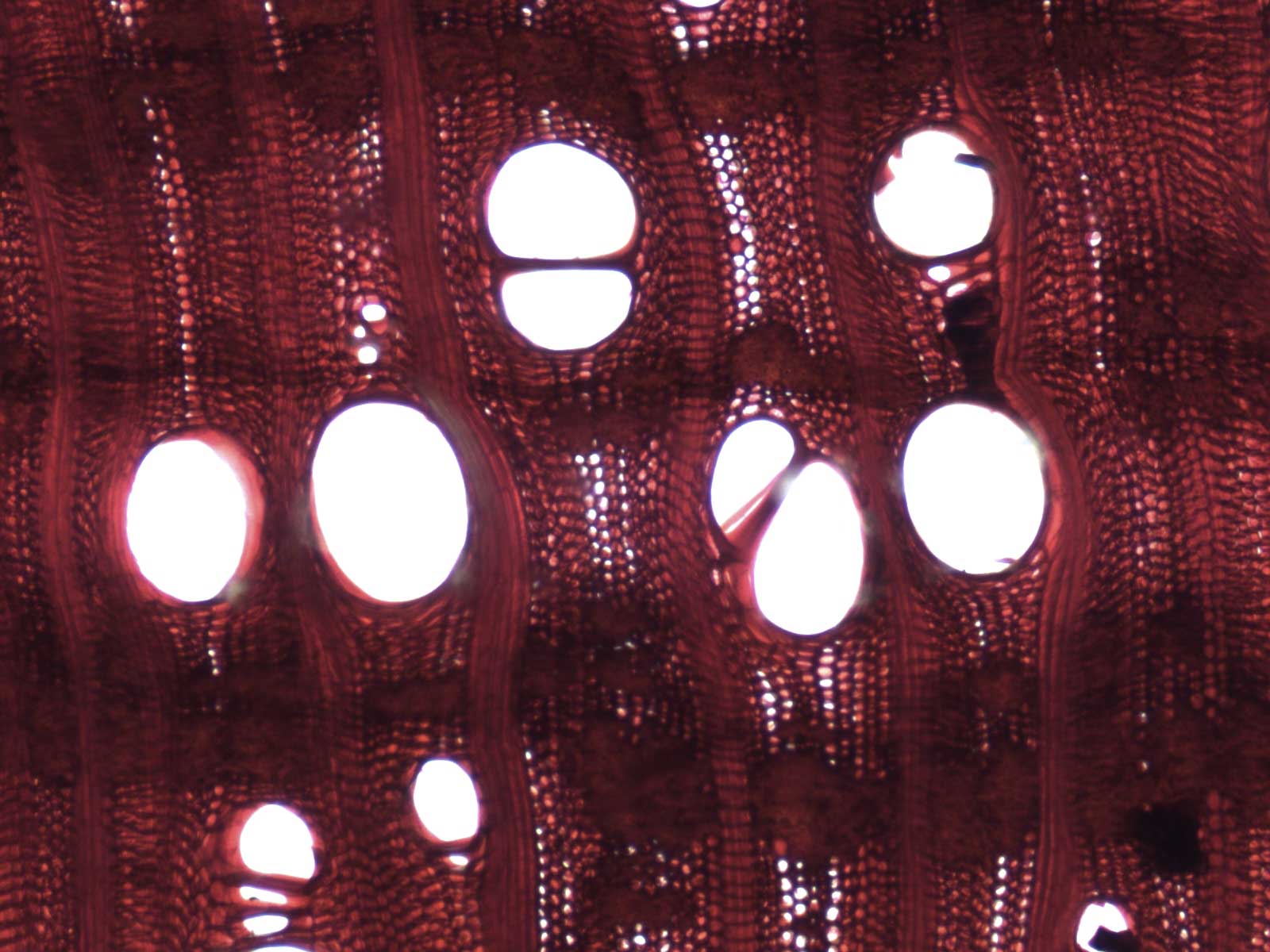 Anillos de crecimiento poco demarcados o demarcados (dependiendo de la especie), con porosidad de circular a difusa, poros solitarios y múltiples a veces agrupados, sin disposición especial, vasos taponados con contenidos en el duramen, con placas de perforación simples. Parénquima axial muy abundante de tipo vasicéntrico, confluente y en bandas anchas. Las series parénquimáticas son de 2 o fusiformes. Radios leñosos multiseriados (de 4 y 3) a veces biseriados, homogéneos. Sin estructura estratificada. Fibras de paredes gruesas, de tipo libriformes. Abundantes cristales en series longitudinales.