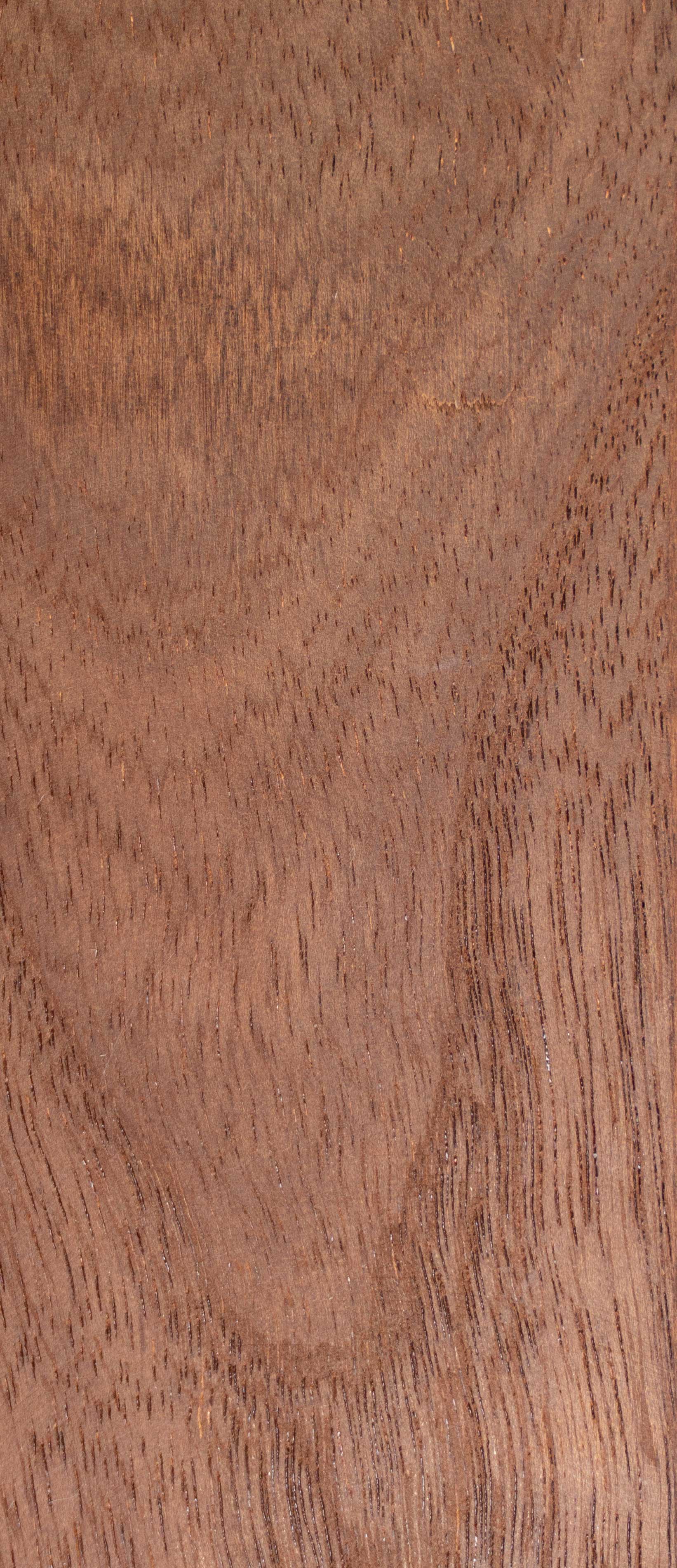 Madera de color castaño rojizo, semipesada y semidura, con una densidad de 0,700 g/cm3. Grano derecho. Textura media y suavemente heterogénea por las líneas de parénquima en bandas angostas (líneas blancas casi invisibles a simple vista en corte longitudinal). Con diseño rayado muy suave o liso. Se destaca principalmente por el color. Con buena durabilidad natural.