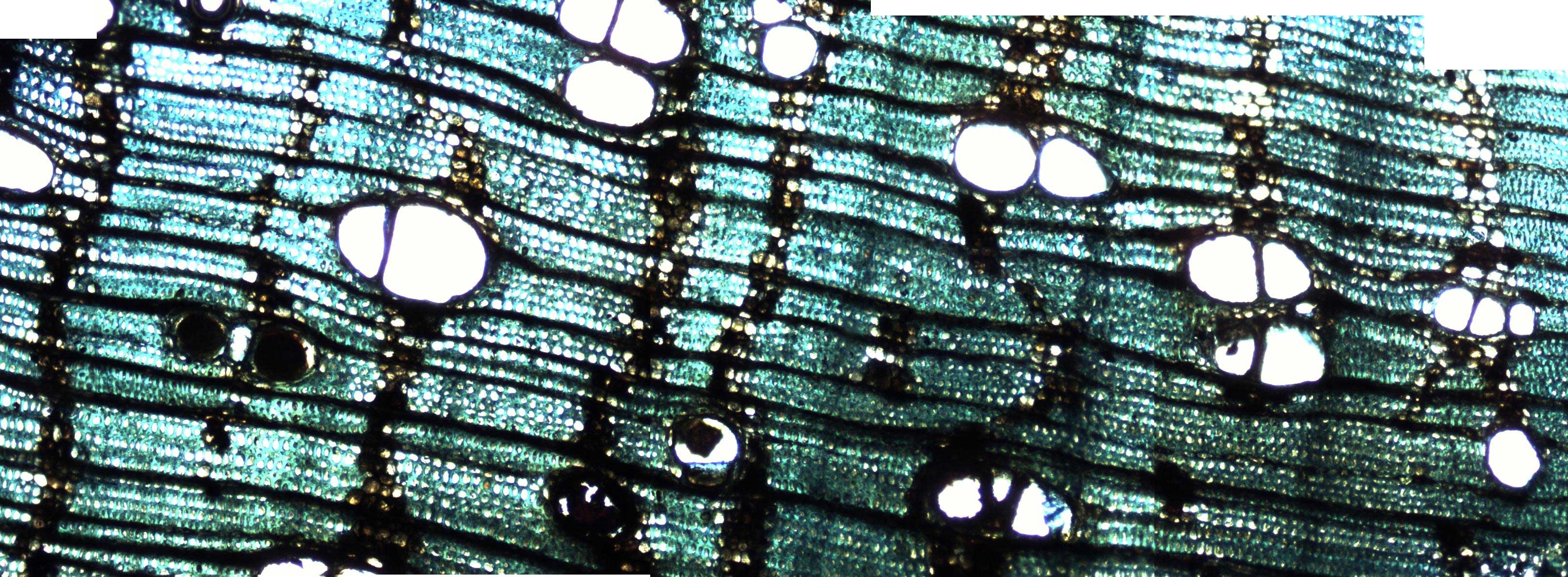 Anillos de crecimiento no demarcados, porosidad difusa, poros solitarios y múltiples, pequeños, sin disposición particular, estructura estratificada ausente, parénquima axial confluente y en bandas angostas, sin contenidos en los vasos.