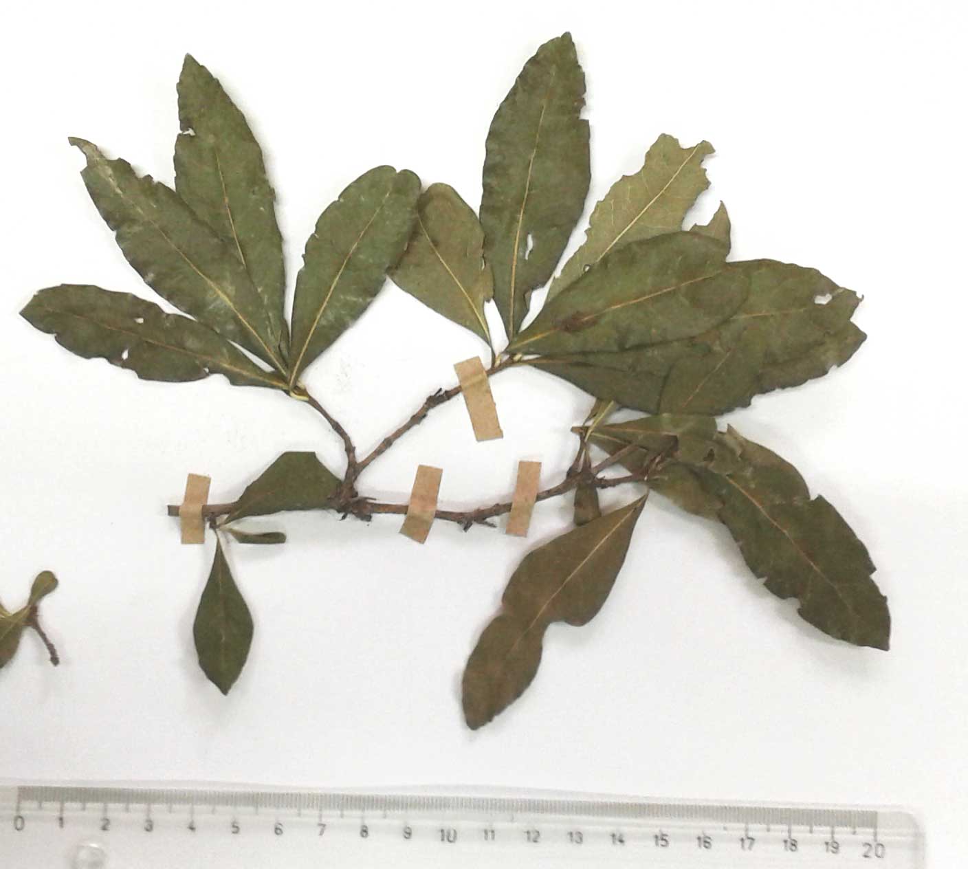 Hojas simples, alternas, oval lanceolada, de 7-15 cm longitud por 4-6 cm ancho, discolores, ápice acuminado, borde entero. Fruto drupa seca subcilíndrica, de ápice truncado y menor a 1 cm largo.