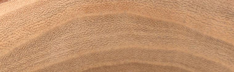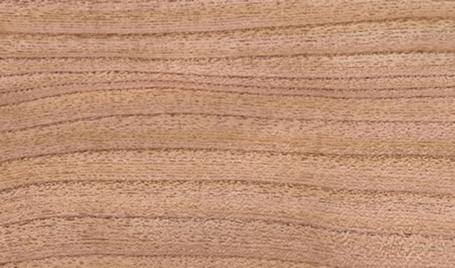 Madera de color claro blanco grisácea a rosada, de peso muy bajo, con una densidad de 0,290 g/cm3. Grano recto. Textura gruesa y heterogénea. Con diseño veteado-floreado. Muy durable a la intemperie