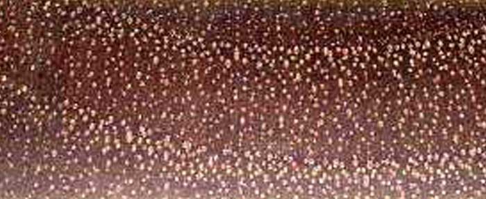 Nogal 4 |Juglans australis. Corte transversal (4x): Anillos de crecimiento demarcados por achatamiento de fibras y porosidad, poros solitarios, 2-3 seriados y agrupados, sin disposición especial, porosidad semicircular, vasos con tílides. Parénquima axial reticulado (no visible). Fibras de paredes medianas.