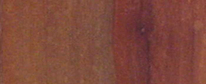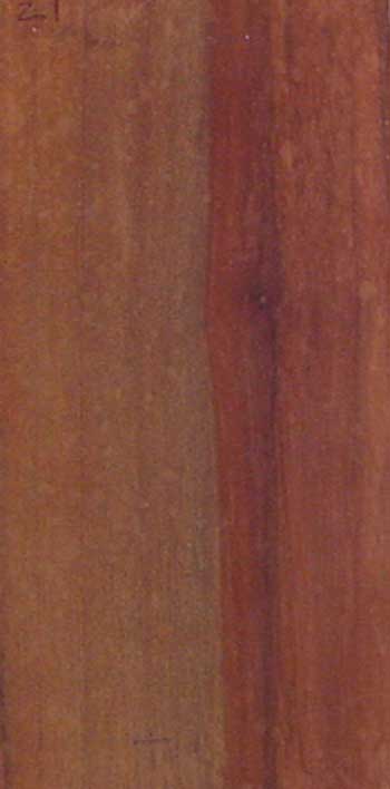 Madera de color castaño oscuro a violáceo, blanda y de peso medio, con una densidad de 0,620 a 0,650g/cm3. Grano oblicuo. Textura media y suavemente heterogénea. Con diseño muy suave veteado-floreado. Su mayor valor estético es el color y el diseño ondeado que presentan algunos ejemplares de grano crespo (muy usado para hacer chapas de alta calidad).