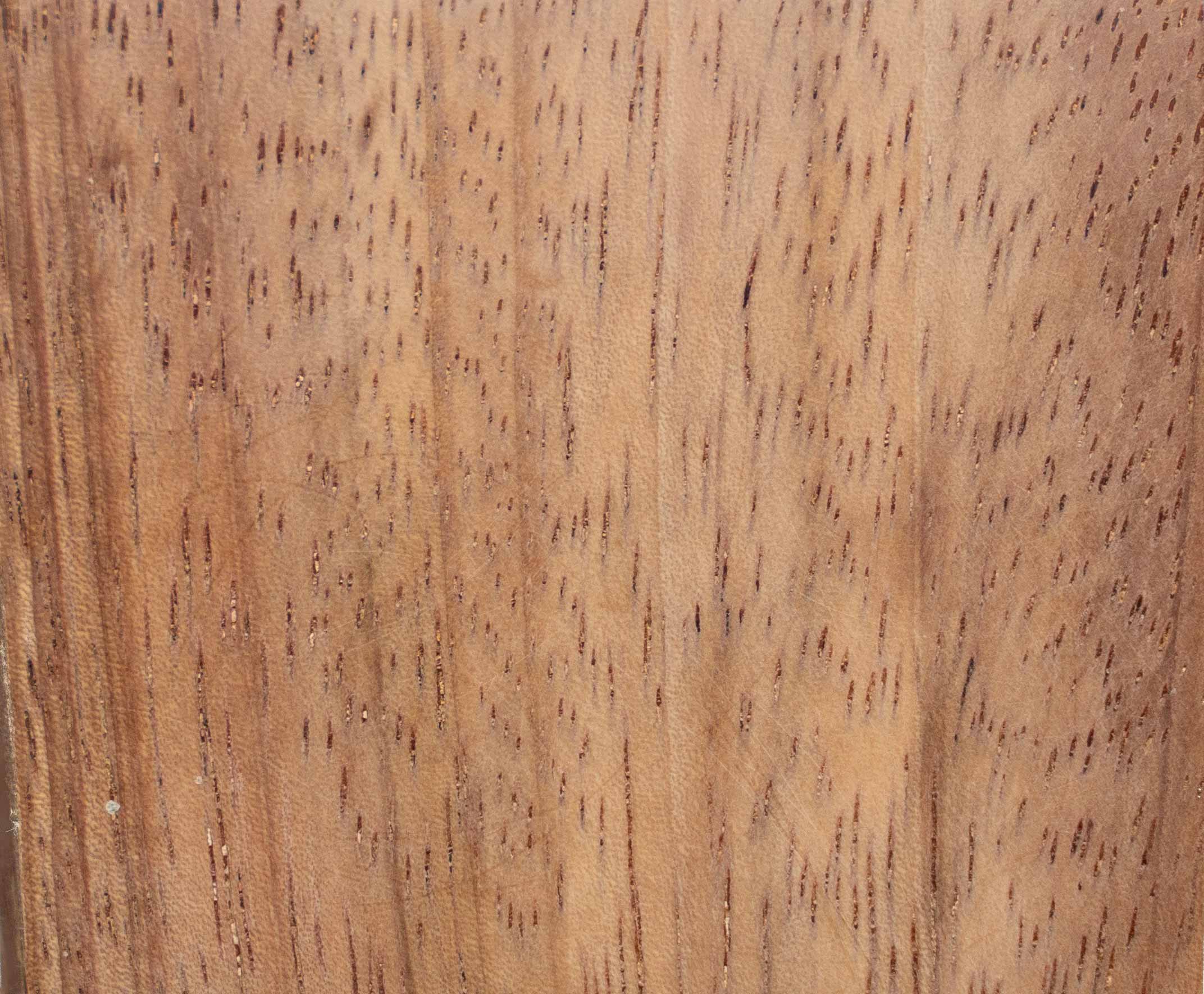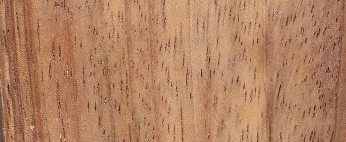Madera de color castaño rosado a castaño rojizo, a veces con vetas longitudinales más oscuras. Madera liviana y blanda, con una densidad aparente de 0,350 a 0,390 g/cm3. Es fácil de trabajar por su grano derecho. Textura gruesa y heterogénea y diseño floreado-veteado. Anillos de crecimiento demarcados por líneas blancas de parénquima marginal. Durable a la intemperie.