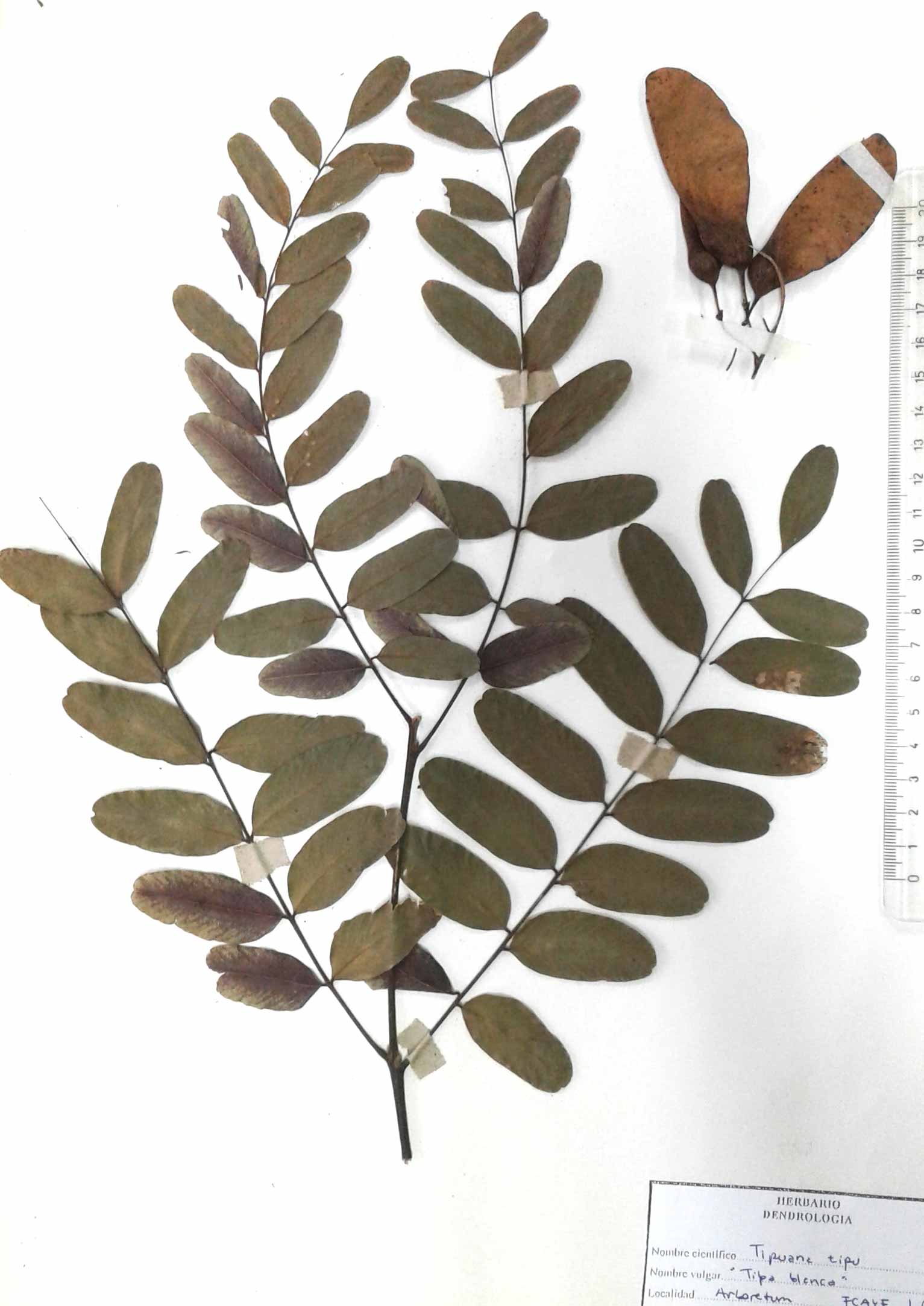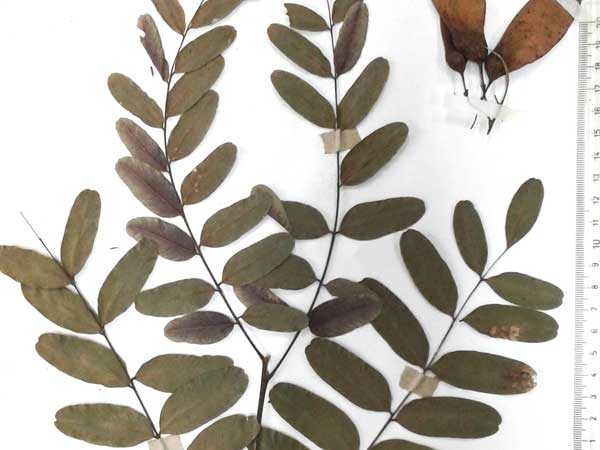 Hojas compuestas, imparipinadas, grandes 10-22 cm de longitud, con 4-9 pares de folíolos de 4-5 cm longitud y 1-2 cm ancho, oblongos, alternos, de margen entero, ápice escotado, base obtusa, cortamente peciolados. Fruto sámara, de 4-7 cm longitud.